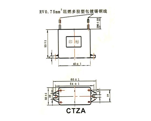 Outline drawing of ctza metallized polypropylene film fixed capacitor