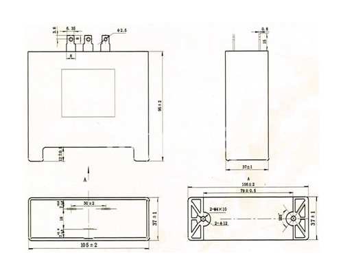 Outline drawing of ctzc metallized polypropylene film fixed capacitor