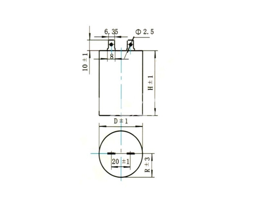 Outline drawing of cbb102 metallized polypropylene film fixed capacitor