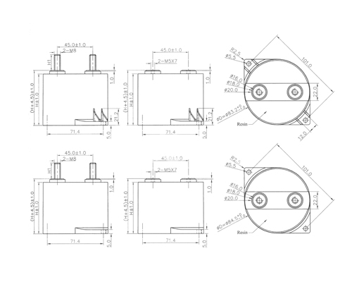 Outline drawing of mkp83a plastic shell dry DC filter capacitor